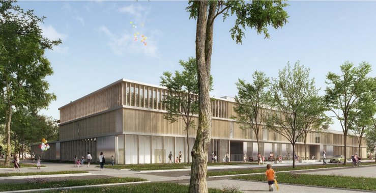 Le groupe scolaire accueille 500 élèves, répartis au sein de 14 salles de classes de maternelle et de 10 salles de classes d’élémentaire, un accueil périscolaire de 250 enfants, une restauration scolaire en liaison froide pour 250 repas/jour et un équipement sportif à destination des élèves du groupe scolaire et ouvert aux associations du quartier.
