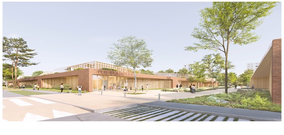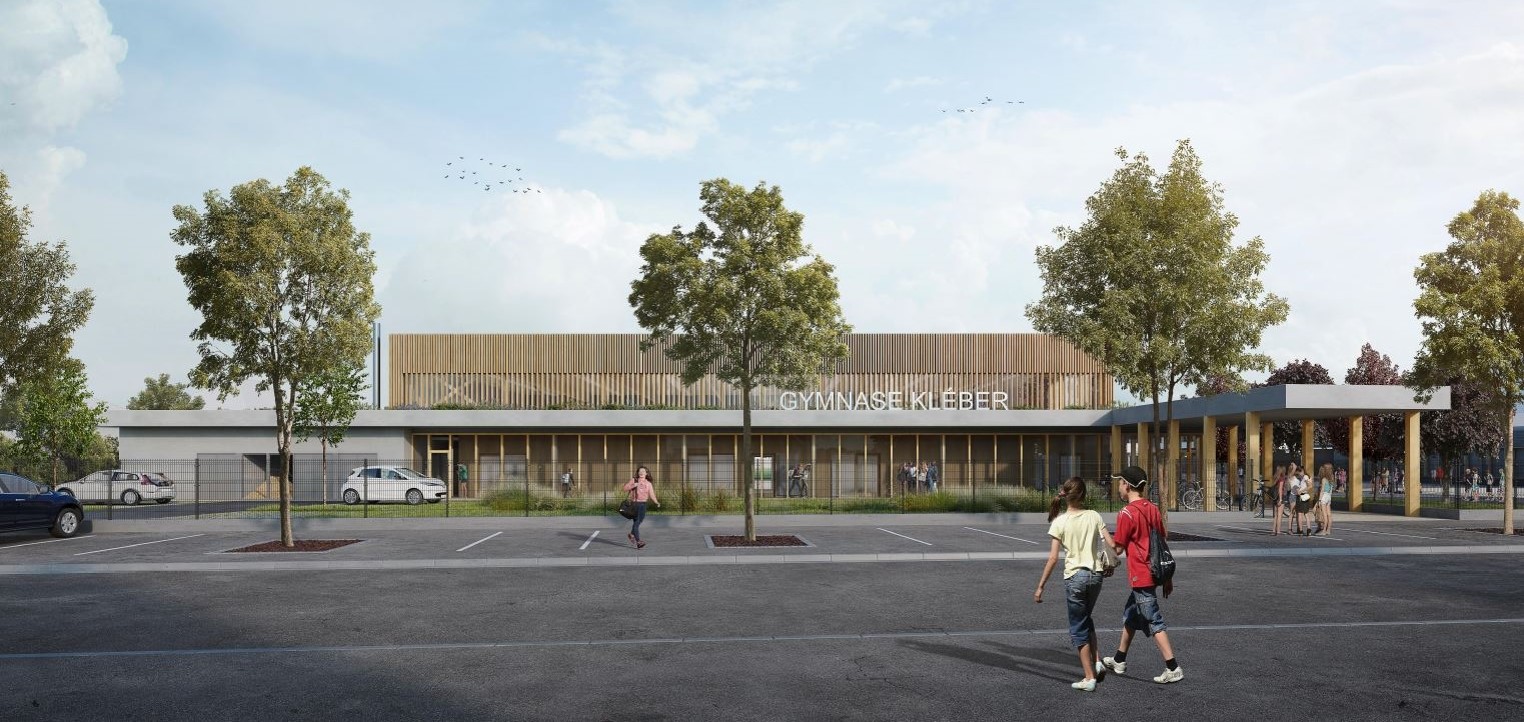 La piscine de la Kibitzenau est soumise à des surchauffes à l’intérieur mais également à l’extérieur, sur les espaces paysagers. Le projet porte sur la création de protections solaires sur les façades nord-est et sud-est, le traitement du patio à l’étage, la protection de la façade sud-ouest par des panneaux photovoltaïques inclinés, la reprise et l’adaptation des espaces extérieurs.