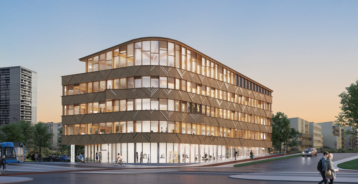 • Niveau carbone C1 et atteinte du niveau 2 du label Biosourcé, avec mise en œuvre de planches mixtes bois/béton et de façades à ossature bois